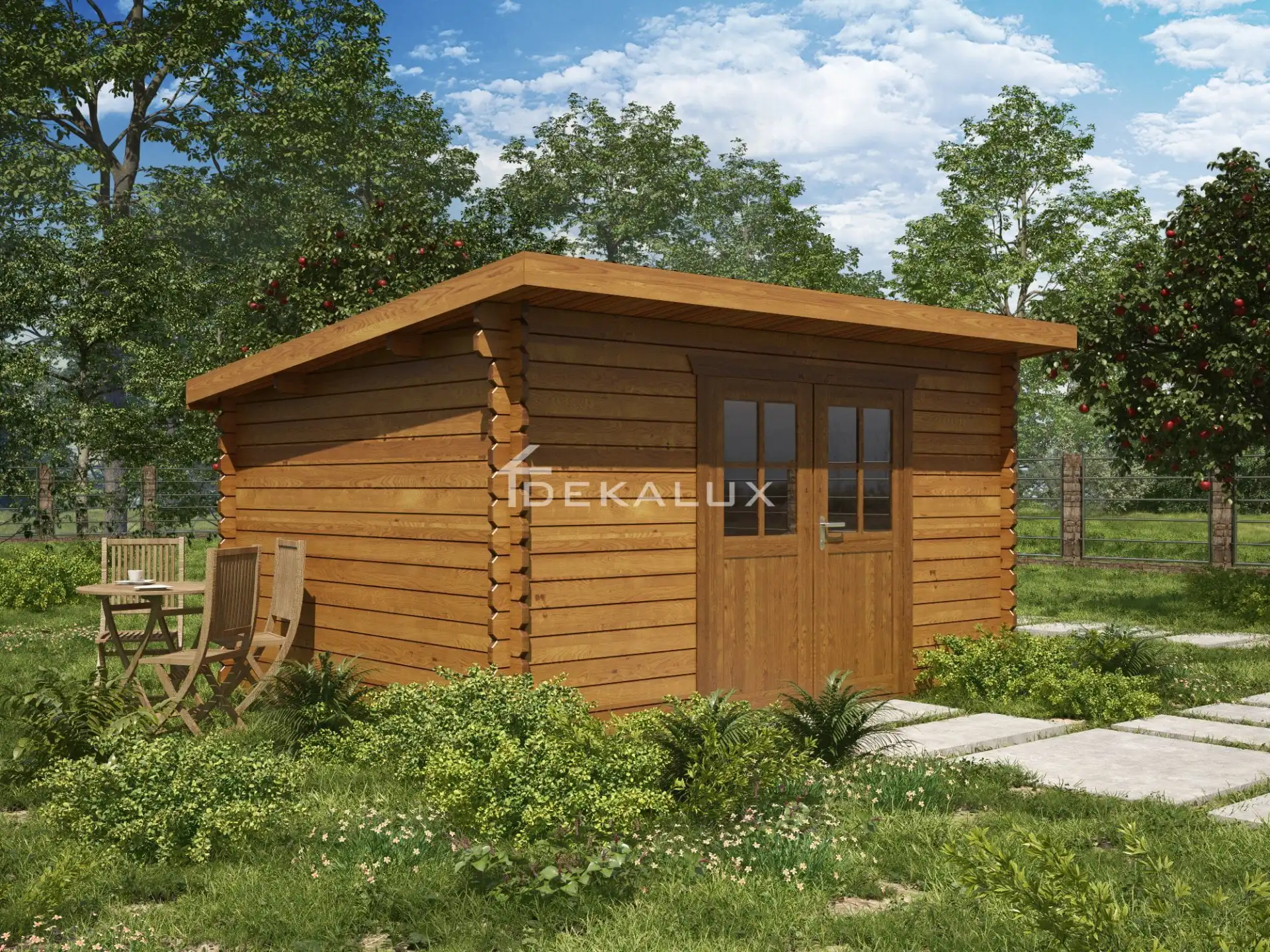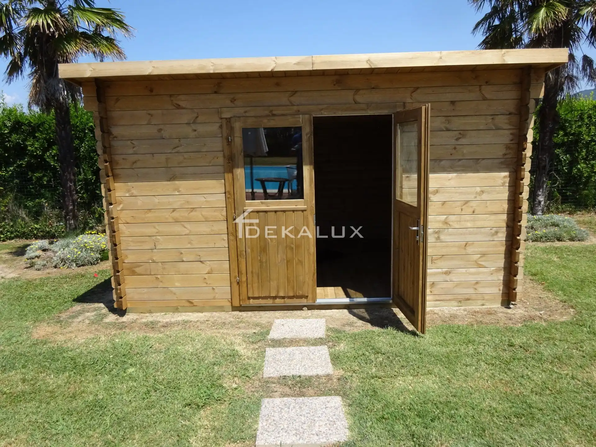 Casetta in legno modello Venezia 4×3 (34 mm) con porta doppia monofalda