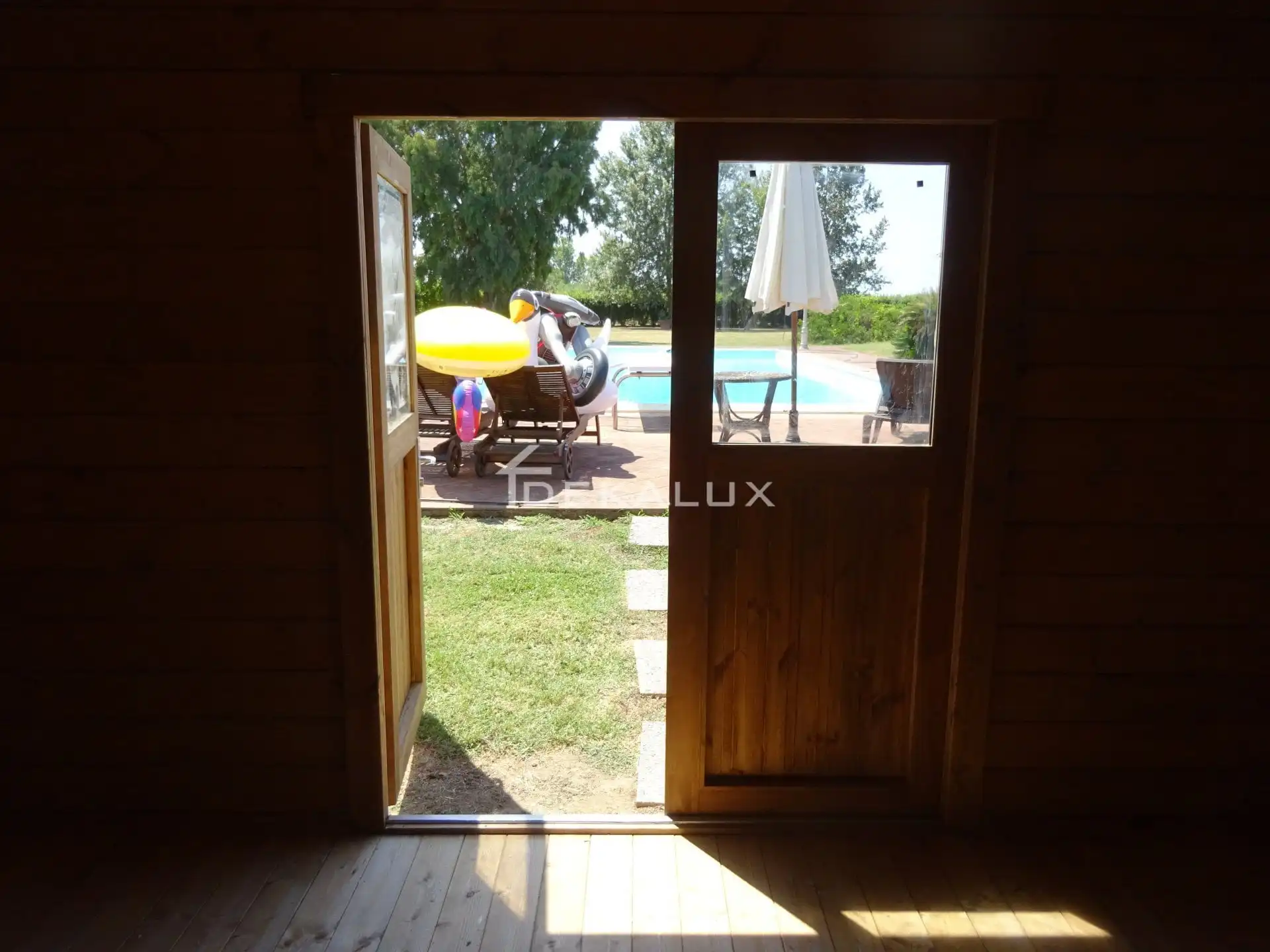 Tutti i modelli delle nostre case e casette in legno sono fornite di pavimento che poggia su travi già impregnati in autoclave. Porte e finestre hanno sempre vero vetro.